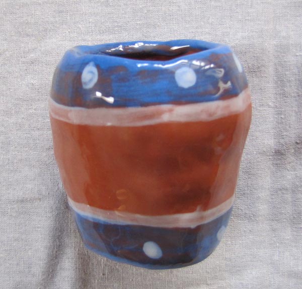 Vazica, ročno izdelana iz gline in unikatno pobarvana. Premer cca. 7 cm, globina 8 cm.